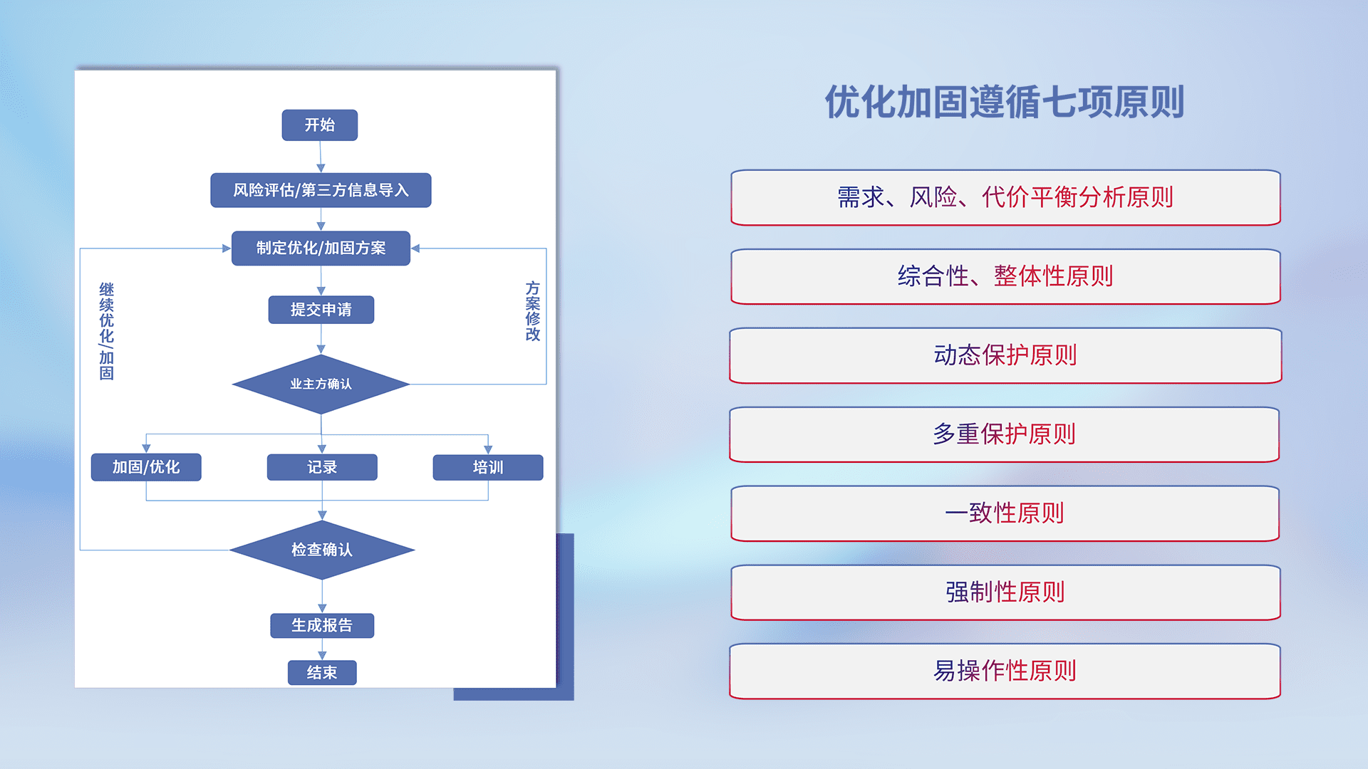 最大程度利用现有资产,,对评估发现的问题进行封堵与整改,,,防止漏洞被利用,,,提升整体网络安全性,,为客户带来高标准的优化加固服务。。